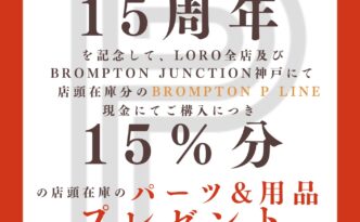 新年明けましておめでとうございます。 昨年は大変お世話になりました。 本年もどうぞよろしくお願いいたします。 おかげさまで本年でBROMPTON JUNCTION KOBEは15周年を迎えることができました …
