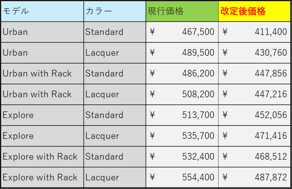 尚、BROMPTON P Lineの価格改定は本日2月1日より適応されます。