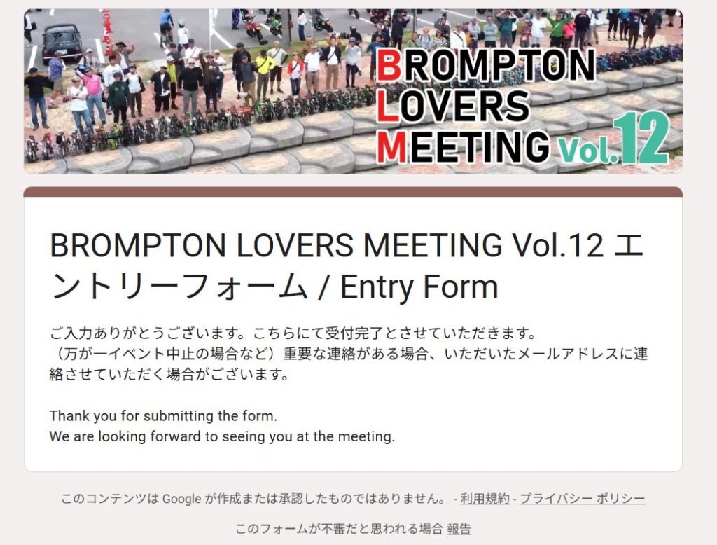 BROMPTON LOVERS MEETING Vol.12 エントリーフォーム