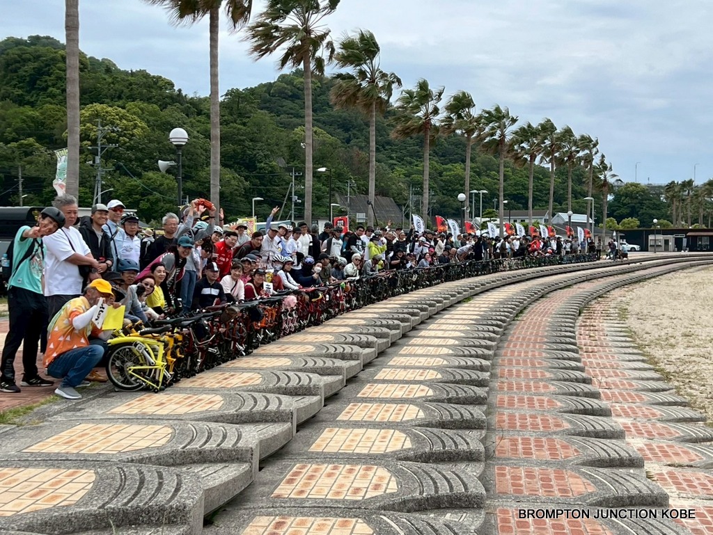 新規のユーザー様も多く参加され、伯方島のビーチに合計222台のBROMPTONが並びました。